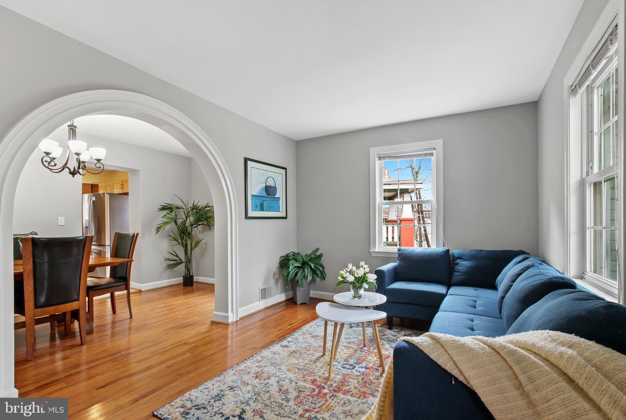 Please note: this home is within the City of Takoma Park! Welcome to 43 Oswego Avenue, a charming, beautifully updated colonial home conveniently located across the street from Heffner park & playground, and mere blocks from schools K-8, Sligo Creek Park and its trails, and a short distance from the Takoma Metro Station. This residence offers a blend of modern comforts and classic charm, featuring light-filled rooms, beautiful archways, handsome wood floors, replacement windows, and enchanting outdoor space.As you approach the home, you'll be greeted by a captivating front yard adorned with mature plantings, stone hardscaping, and a delightful covered front porch. Step inside to discover a sun-drenched living room boasting gleaming wood floors and elegant archways. Adjacent to the livin...