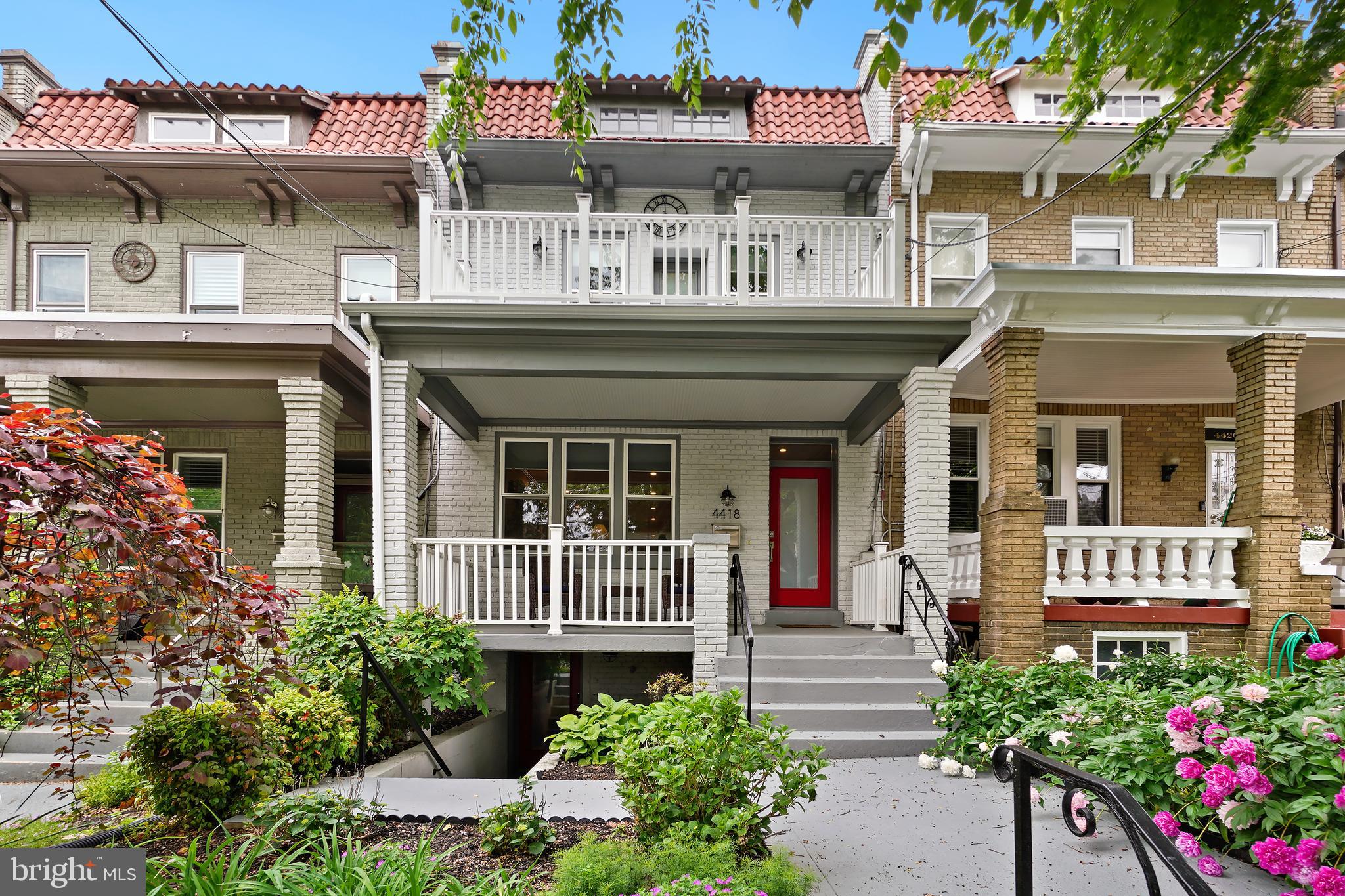 Welcome to 4418 New Hampshire Ave NW -- where classic DC architecture meets modern comfort in the heart of Petworth. This beautifully updated brick rowhome, originally built in 1924, has been thoughtfully reimagined for contemporary living while preserving its original charm. With four bedrooms, three and a half bathrooms, and secure parking for two cars, this home offers a perfect blend of style, space, and location.A lovely front porch and timeless stone hardscaping invite you inside to a light-filled main level featuring an open layout ideal for both entertaining and everyday living. The spacious living room, accented with crown molding, recessed lighting, and warm wood floors flows through the dining area to a bright, modern kitchen - the heart of the home! Which enjoys solid surface counters, stainless steel appliances, gas cooking, pendant lighting, and ample cabinetry. Step right out to the rear deck, seamlessly connecting indoor and outdoor spaces. A stylish powder room rounds out the main level.Upstairs, you'll find three bedrooms, two renovated full baths, and a conveniently located laundry area. The sunny primary suite includes recessed lighting, a walk-in closet, and sleek en-suite bath with a floating double vanity and glass-enclosed shower clad in elongated subway tile. One of the secondary bedrooms offers access to a charming front balcony -- a perfect perch for relaxing.The lower level provides a flexible bonus space with both front and rear entrances -- ideal as a guest suite, home office, or potential rental. This level features a living area with tile flooring, a mini kitchenette, a bedroom, a full bathroom, and a second laundry area.Enjoy outdoor living on the rear deck, front porch, and balcony -- plus the convenience of secure off-street parking behind a roll-up garage door.Located just moments from all that Petworth has to offer -- including local markets, cafes, restaurants, libraries, and parks -- this home is also less than a mile to both the Green and Red Line Metro stations. Whether you're strolling to the farmers market, grabbing a bite on Upshur Street, or commuting downtown, this location offers exceptional access to the best of DC living.