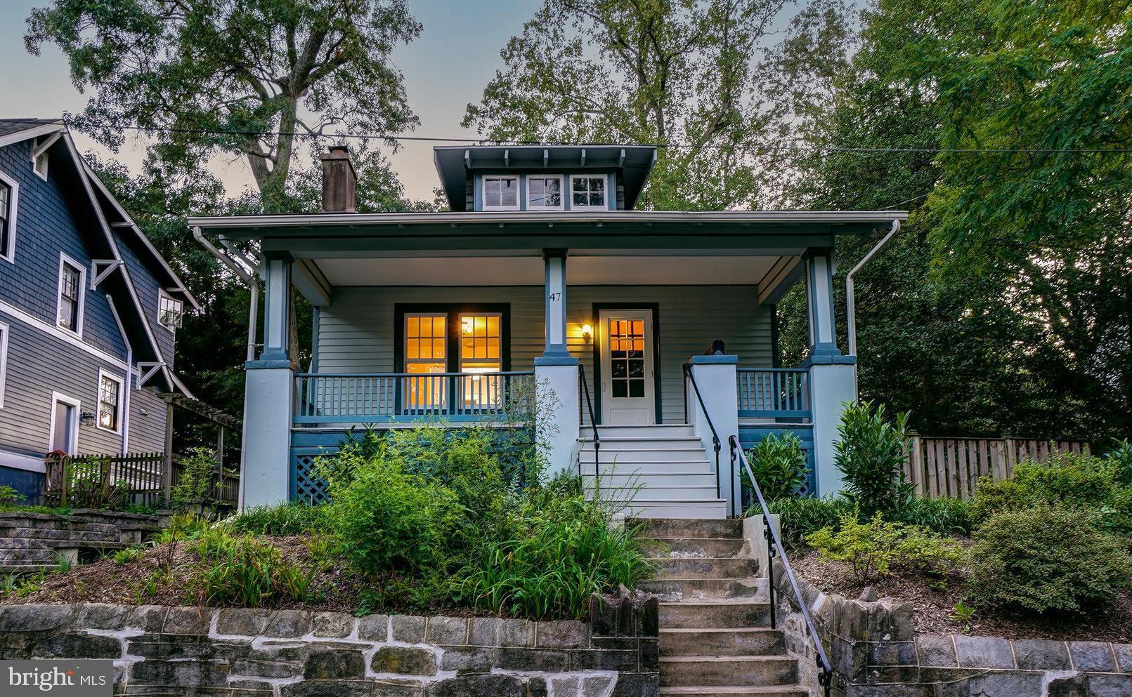 Amazing Location! Conveniently located near the Takoma Park Community Center, Farmers' Market, and the brand-new Takoma Park Library! Welcome to this picturesque tree-top bungalow with a delightful front porch and a detached garage in vibrant and friendly Takoma Park! Built circa 1925, and completely remodeled in 2016, this distinctive property is brimming with charm and features an array of superb architectural details, including exquisite woodwork and Pine flooring, a handsome fireplace, replacement windows, vintage fittings, and charming archways.Upon entry, there is a 'drop-zone' nook that opens to the light-filled living room, which offers a brick fireplace flanked by windows. Beyond the living room is a formal dining room with an archway and the beautifully renovated kitchen. The ...