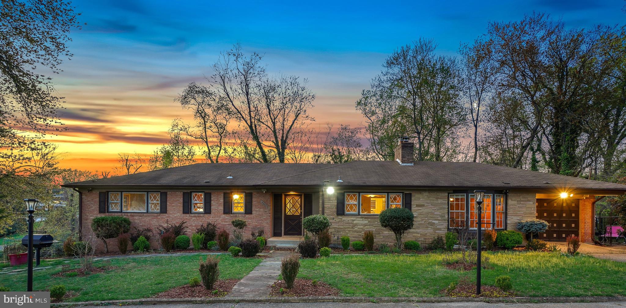 A substantial price adjustment on this solid brick mid-century rambler! Situated on an incredible, picturesque 1.74-acre lot, this charming home offers the convenience of one-level living on an extraordinary property surrounded by lush greenery. Built in 1961, this spacious three-bedroom, two full-bath, and two half-bath home boasts exceptional flow, beautiful brick accents, and practical living spaces.The inviting living room features a brick fireplace, wood beam ceilings, and sliding doors that open to the backyard. The large eat-in kitchen is equipped with a stainless steel appliance suite, a center island, a breakfast bar, a beamed ceiling, and ample prep space. Adjacent to the kitchen, the formal dining room features French doors leading to an office/family room.The bedroom wing includes three well-proportioned bedrooms with wood flooring and two full bathrooms, including a primary suite. The primary bedroom offers a walk-in closet with an organizing system and a private full bath.The lower level provides additional living space, including a large recreation room with a fireplace and bar area, a bonus room, a half bathroom, a cedar closet, a laundry room, and incredible storage with potential for further customization.The exterior includes a convenient carport and an expansive 76,136 sq. ft. lot with mature trees, backing to a stream. This idyllic setting offers peace and serenity, with easy access to I-495 and just 1.2 miles to the Green Line Metro station. Nearby amenities include Woodberry Forest Recreation Center and Henson Creek Park.