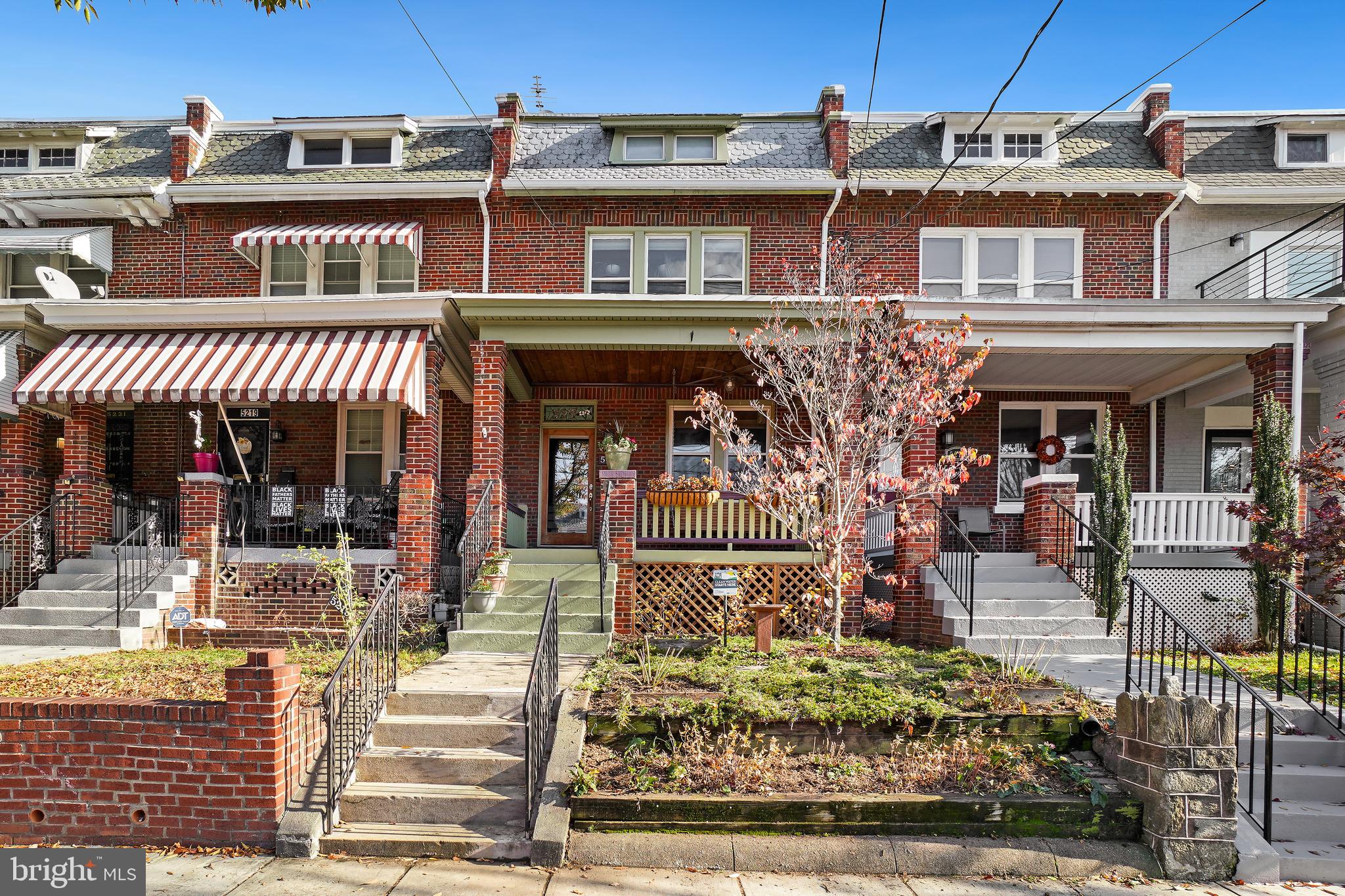 Welcome to this stunning, completely renovated brick row-house in the heart of Petworth, offering urban living at its finest, just 0.8 miles from the Metro! The house is bathed in sunlight, featuring an open concept living space with striking wood floors, recessed, LED lighting, and modern replacement windows.Upon entering through a beautiful front door with a transom with custom stained glass Dogwood flower, you're welcomed into the light-filled living room. This inviting space features display shelving and crown molding. The chef's kitchen is extraordinary, boasting solid marble countertops, a peninsula, stylish cabinetry including a custom-made spice rack, stainless steel appliances, a bonus beverage refrigerator, and a gas range with a sleek stainless-steel exhaust hood. The kitchen seamlessly connects to both the living room and a spacious dining area with a contemporary chandelier and floating wood shelving. Adjacent to the kitchen is a versatile sitting room or office, providing access to a picturesque large deck. The main level is complete with a convenient powder room.Upstairs, three bedrooms and two updated full bathrooms await. The primary bedroom offers recessed lighting, a ceiling fan, a closet with an organizing system, and a luxurious spa bathroom featuring a glass-enclosed shower with a jetted shower panel system. The two remaining bedrooms are connected with a Jack-and-Jill bathroom with a large shower. The finished lower level expands the living space, offering a large family room, a laundry/storage area, and a full bathroom. Outdoor living is a delight with a covered front porch with porch swing and ceiling fan, an expansive rear deck, and a detached storage shed with a green roof, perfect for bike storage. The property boasts native plants and includes a mature Concord grape vine and hearty kiwi that produce a bountiful harvest of delicious fruits. A gated parking pad/patio for one car adds a practical touch to this remarkable home. Owner-owned solar panels and a custom solar-powered rainwater irrigation system (serving a DC RiverSmart rain garden) further enhance the property's eco-friendly features.This house truly has it all, combining the best aspects of urban lifestyle with practical living. With a 'Very Walkable' and 'Very Bikeable' Walk-Score rating, you're in the midst of a vibrant neighborhood, offering both convenience and style. Don't miss the opportunity to call this residence your home!