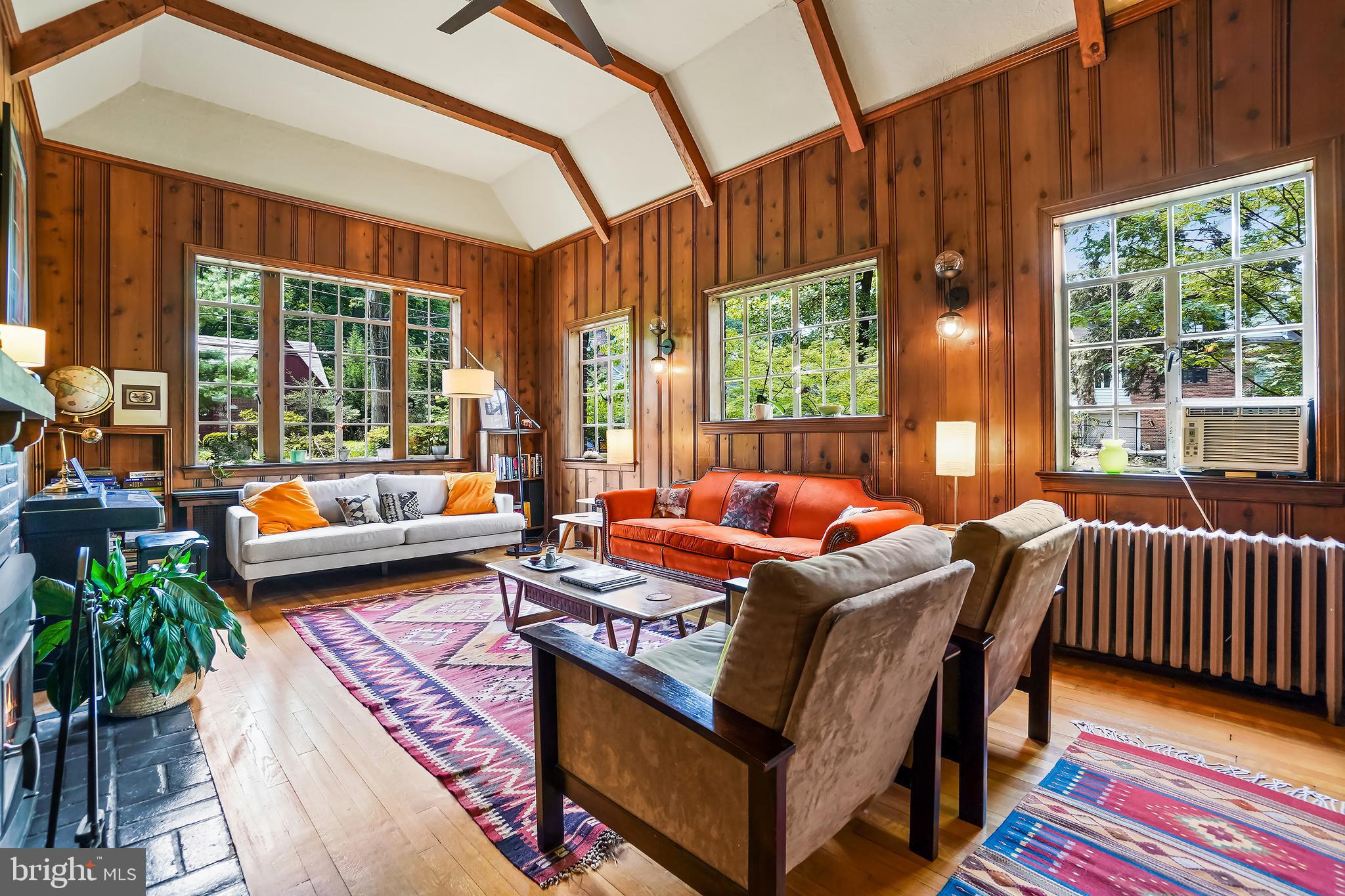 SIMPLY ENCHANTING - like a scene from a fairy tale! This captivating brick-and-stone Tudorhome exudes magic, offering a variety of thoughtfully designed spaces that combine periodcharm with modern convenience. Built in 1932, this mesmerizing Tudor is ideally situated in theSligo Park Hills neighborhood of Silver Spring, just steps from parks and trails! Upon entry, you'll be greeted by a classic covered front porch, inviting you to step inside and explore the enthralling living spaces within. Three levels of original architectural details include incredible hardwood floors throughout, glass doorknobs, custom millwork, and elegant lighting.The warm and inviting entry foyer leads to an alluring living room with a wood-burning stovefireplace insert, a 12-foot barreled and beamed ceiling, e...