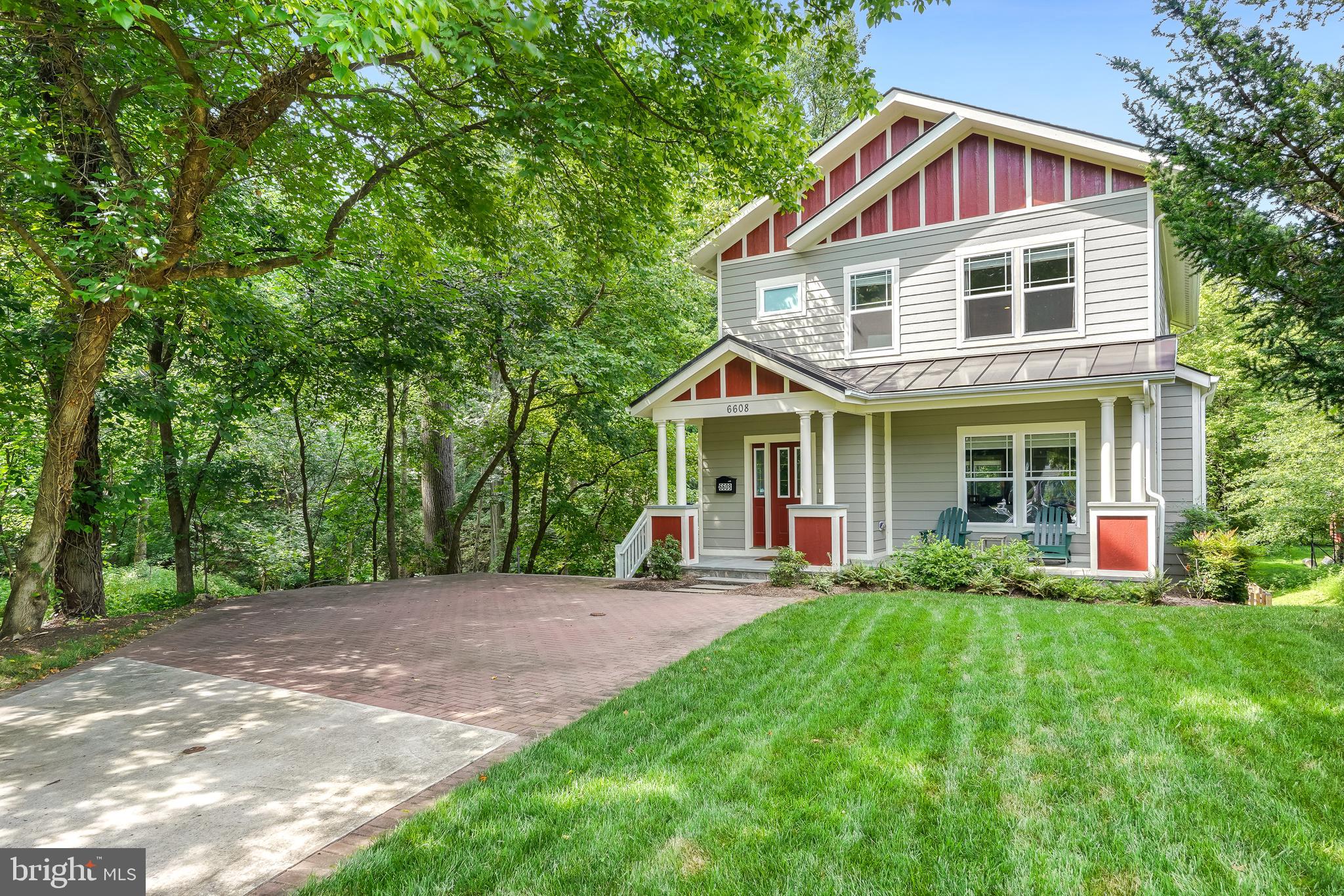 Welcome to this extraordinary modern Craftsman Colonial, built in 2014, and perfectly situated in a picturesque setting beside the tranquil Takoma Branch Stream. From the moment you arrive, the soothing sounds of babbling water and the charming covered front porch create an irresistible first impression. This home combines natural beauty, thoughtful design, and an enviable location!Inside, the open-concept layout is as versatile as it is stylish, offering beautifully proportioned rooms and a seamless flow for daily living, work, and entertaining. The home is filled with natural light and enhanced by rich hardwood flooring, classic trims, recessed LED lighting, and striking double-paned windows that frame scenic views and invite the outdoors in. A brick driveway leads to the inviting front porch, which opens into a warm and functional foyer with a coat closet.The spacious living room features a wall of windows, a fireplace with glass doors, and a dramatic spoked chandelier. Adjacent is the open dining area, complete with an elongated modern farmhouse chandelier and room to host memorable gatherings. The chef's kitchen is a dream--equipped with GE stainless steel appliance (with a Bosch dishwasher), granite countertops, a gas range, a center island, soft-close cabinetry, pendant and recessed lighting, a pantry, and a built-in desk area. The kitchen opens directly into the cozy family room, where French doors lead out to an amazing composite deck overlooking the stream. A sunny main-level bedroom and full bathroom complete this floor, perfect for guests or a quiet workspace.Upstairs, three spacious bedrooms include a showstopping primary suite with wall-to-wall carpeting, custom blinds, a huge walk-in closet, and a serene en-suite bath. The spa-like bathroom offers a soaking tub with floor-mounted filler, glass-enclosed shower with bench seating and a niche, double vanity, and elegant marble hexagon tile flooring. Two additional bedrooms on this level each feature deep closets, charming, wallpapered accent walls, and recessed lighting. This level also includes a hall bathroom with a double vanity and a convenient laundry room.The expansive walk-out lower level offers tremendous flexibility and function. Enjoy a large recreation room with a wet bar with two wine refrigerators and sleek cabinetry, a Jack-and-Jill full bathroom, a fifth bedroom or au pair suite, a gym or bonus room, and a large storage room.The outdoor spaces of this home are equally enchanting. Relax on the front porch or unwind on the fabulous deck as you listen to the babbling stream below. A lower patio with pleasing pergola, and a flat, fenced backyard make the outdoor space perfect for entertaining play, or pets. The exterior is clad in durable Hardiplank siding. A private driveway provides ample parking and includes an EV charging station.Ideally located in eclectic, community-minded Takoma Park, this home offers not just a place to live but a lifestyle to love. Enjoy block parties, Halloween parades, and the neighborhood's beloved Turkey Fry tradition. All just moments from local gems like the Takoma Farmers Market, Cielo Rojo, Busboys and Poets, Takoma Urban Park, and more. We'll see you there!