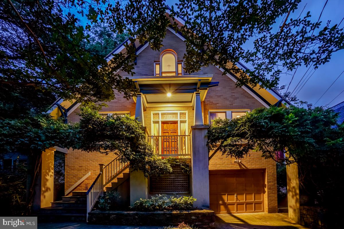 Welcome to 7102 Woodland Avenue, an exquisitely renovated contemporary craftsman beauty. Originally built circa 1927, this property has been completely remodeled with painstaking attention to detail, honoring the home's history. The current owners have taken great care in updating this gorgeous house to combine its original vintage charm with all the convenience of modern living! Replete with architectural details, including vaulted ceilings with wonderful skylights, custom built-ins, original wood trims, glass doorknobs, exquisite wood doors, and vintage fittings. This home has beautiful stone hardscaping, a covered front entry, an inviting foyer, a handsome living room featuring a wood-burning fireplace flanked by custom built-in bookcases with glass-fronted cabinetry. Beyond the living room is a large family room with an expanse windows. The formal dining room opens to the living room and the redesigned chef's kitchen provides great flow for entertaining. The gourmet kitchen features granite counters, rich wood cabinetry, high-end stainless-steel appliances including a Miele dishwasher, two Thermador wall ovens, a Bosch gas cook-top with 5 burners, a Liebherr refrigerator, and a light-filled breakfast room with display shelving and access to the sunroom and backyard. The main level includes a spacious office with two walls of built-ins, a bedroom with a walk-in closet, a remodeled bathroom, and several closets. Upstairs are three sizable bedrooms, multiple skylights, and a large, beautifully renovated full bathroom with a glass-enclosed shower, a free-standing soaking tub, and double vanity. The primary bedroom has vaulted ceilings, skylights, and a walk-in closet. One of the upper-level bedrooms has amazing built-in eave storage (drawers and shelving) and the other bedroom includes a cozy sleeping porch with delightful backyard views. There is a charming landing area on this level with built-ins and a walk-in closet. The lower level includes a living area with a bar, a second kitchen with a breakfast area, a versatile exercise / playroom, a mudroom area with an exterior entrance, and a laundry room, as well as plenty of storage. The picturesque exterior includes a fenced back yard with mature plantings, an expansive stone terrace, a basketball court, stone pathways, a garage, and a secure storage room. The ideal location: around the corner from Takoma Junction, the food co-op, shops and restaurants, and close to Takoma Urban Park, and just 0.7 miles to the Takoma Metro Station! Enjoy living in eclectic Takoma Park; the location offers all the allure and convenience of this very special area. Relish the warm sense of community as well as ready access to shopping, restaurants, the farmer's market, and entertainment in both Takoma Park and lively downtown Silver Spring. See you there!