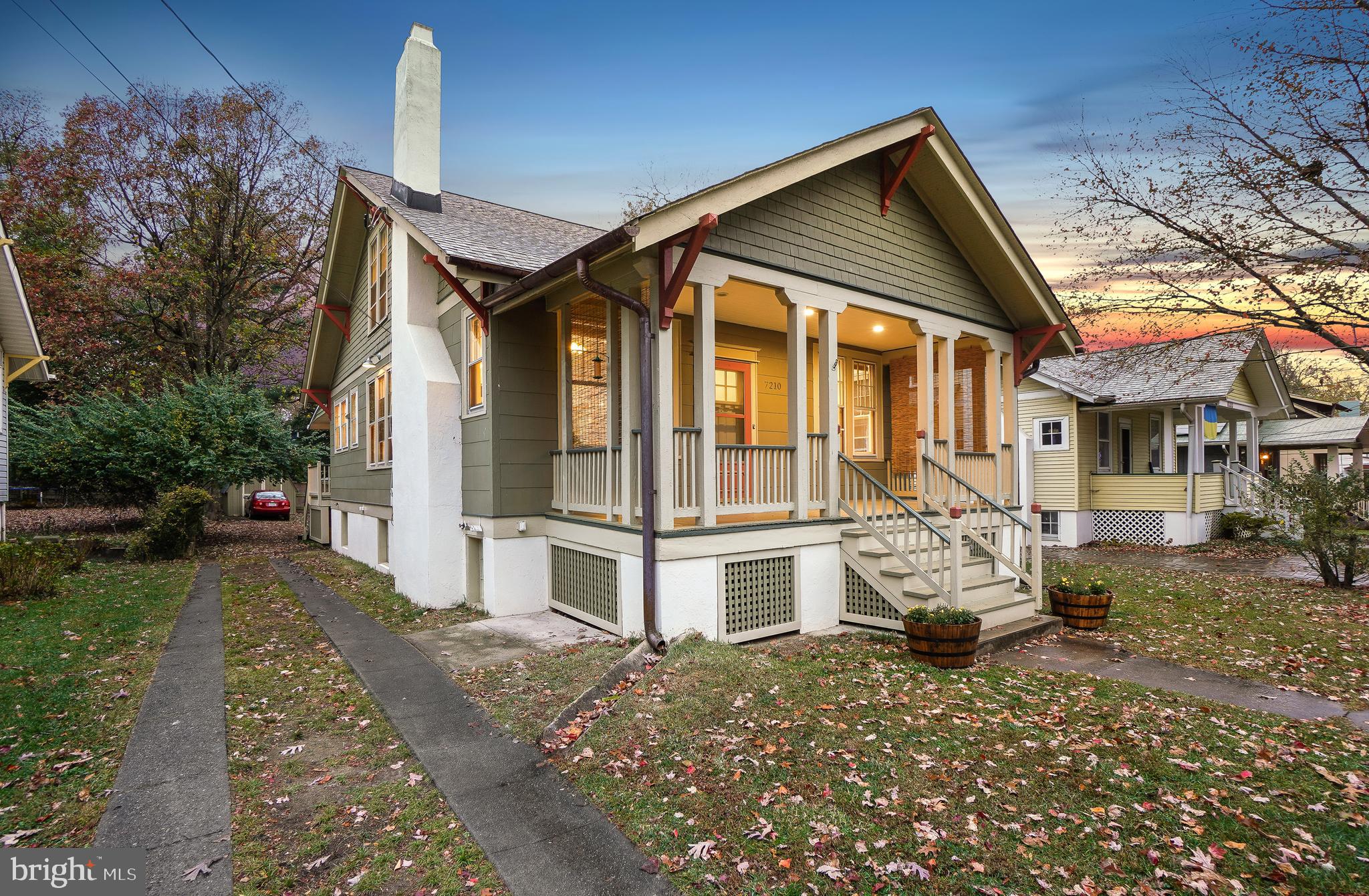 Welcome to 7210 Spruce Avenue, an elegantly restored and expanded Craftsman-style bungalow. Originally built around 1923, this home has been thoughtfully renovated to merge timeless character with modern comforts. Every detail has been carefully considered, from the exquisite wood trim and custom built-ins to the LED lighting, hardwood floors, and delightful vintage touches.The home welcomes you with a freshly-painted quintessential bungalow front porch, featuring a tongue-and-groove ceiling. Step inside to a handsome living room with woodburning fireplace, period lighting, and high ceilings, and a spacious dining room which opens seamlessly into the redesigned gourmet kitchen, creating an ideal space for entertaining. The chef's kitchen boasts butcher block countertops, stainless steel appliances, a 5-burner gas range, floor-to-ceiling pull out pantries, a porcelain farm sink, pendant lighting, and soft close cabinetry. Beyond the kitchen, you'll find a convenient ancillary kitchen with additional cabinetry, shelving, and counter space - the perfect spot to tuck away all your counter appliances and food supplies. Off the back of the house is a wonderful family room addition with excellent natural light, durable flooring, and LED lighting. The main level is completed by two bright bedrooms with ceiling fans and a renovated full bathroom featuring a claw tub and a heated towel rack.Upstairs, the private primary bedroom retreat features display shelving, recessed lighting, sun tunnel skylights, a sitting area/office, a huge walk-in closet and serene treetop views. The remodeled primary bathroom has a glass enclosed shower with a niche and mini subway tiled walls, a heated towel rack, and decorative tile flooring. This level has a versatile and peaceful meditation / bonus room with two eave storage areas. The huge unfinished lower level with lots of potential to finish out, this level includes a laundry area, and ample storage. The lower level has windows on two sides and an exterior entrance. The classic exterior is equally captivating, showcasing a spacious, level yard adorned with mature trees, copper gutters, exterior lighting, and charming square lattice accents. The property also includes multiple exterior spigots and a long driveway for added convenience. Sidewalks and a quiet street with no through traffic enhance the appeal of this highly desirable block, in the heart of Takoma Park's Historic District.Enjoy living in eclectic Takoma Park; the location offers all the allure and convenience of this very special area situated just steps from parks and playgrounds, Farmer's Market, the newly renovated food Co-op and shops, schools K-8, as well as the Red Line Metro station and Ace Hardware. Relish the warm sense of community as well as ready access to shopping, restaurants, and entertainment. This neighborhood is known for its lively block parties, Halloween gatherings, and neighborhood meetups.