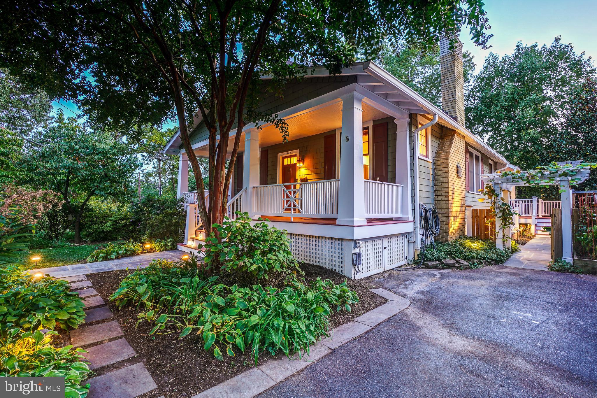 Welcome to 7400 Flower Avenue, an exquisitely renovated craftsman-style Bungalow. Originally built circa 1923, this meticulously maintained home has been lovingly restored and updated, blending its vintage charms with modern conveniences, including an open kitchen, carefully finished lower level, and owned solar system. The attention to detail is evident in the beautiful wood trim, custom built-ins, tray ceilings, hardwood floors, and inviting outdoor spaces.The home welcomes you with a quintessential bungalow front porch featuring a tongue-and-groove ceiling. Step inside to a handsome living room with a gas-burning fireplace and 9-foot ceilings, and a spacious dining room framed by two stunning archways. The dining room opens seamlessly into the redesigned gourmet kitchen, creating an ideal space for entertaining. The chef's kitchen boasts quartz countertops, stainless steel appliances, a brand-new gas range, a peninsula breakfast bar, coffered ceilings, an outstanding stained glass window, and custom cabinetry encasing the refrigerator. Beyond the kitchen, you'll find a convenient mudroom with access to the back deck, and a versatile bonus room with built-in display shelving. The main level is completed by two bright, generously sized bedrooms and a full bathroom featuring a jetted soaking tub.Upstairs, the private primary bedroom retreat features a gabled ceiling, casement windows, skylights with blackout blinds, a sitting area/office, all with an enchanting airy treetop views.The recently updated lower level offers a fully equipped in-law or au pair suite, complete with a living area/family room, a guest bedroom, an incredible walk-in closet with an organizing system, a beautiful full bathroom, a laundry room, and ample storage. This level also has a separate side entrance, providing convenience and privacy.The picturesque exterior is equally impressive, featuring a tranquil fenced yard with mature plantings and a thriving garden bed with squash, spinach, strawberries, and cucumbers. Additional highlights include an arbor entry with grapevines, pathways, a kayak/canoe rack, a large deck with a covered section, an expansive stone terrace, and an intricate drainage system to keep the basement dry. The yard is has an irrigation system, and the long driveway includes an EV charger for electric vehicles.Located in eclectic Takoma Park, this home offers the best of both worlds - a warm, tight-knit community atmosphere with easy access to trails, parks, playgrounds, shopping, restaurants, and entertainment in both Takoma Park and vibrant downtown Silver Spring. You'll be just steps from Sligo Creek Park and a short ride to the Red Line Metro. This neighborhood is known for its lively summer block parties, Halloween gatherings, potluck dinners, and gardening meetups.