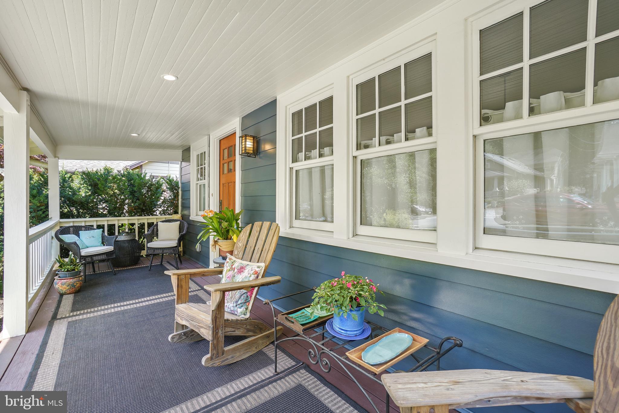 STUNNING, LUXURIOUS, AND IMPECCABLE! Rare opportunity to acquire a beautifully appointed, fully remodeled bungalow with a covered front porch and a large addition, just steps from downtown Silver Spring. Originally built in 1923 and later expanded and renovated, this magazine-worthy home perfectly blends vintage charm with modern living spaces, utilizing exquisite finishes, handsome moldings, elegant lighting, wood floors, glorious windows, five-panel wood doors, and superb architectural details throughout. Every aspect of this residence has been thoughtfully designed and enhanced--it is truly a work of art.This picture-perfect home features an inviting covered front porch, creating incredible outdoor living space to enjoy morning coffee or chat with neighbors. Enter into the welcoming foyer that flows into the sunlit living room with a fireplace flanked by built-ins and a drum light fixture. Beyond the living room is an elegant dining room with a striking glass cone-shaped chandelier and abundant natural light, opening to the extraordinary chef's kitchen.The renovated top-of-the-line kitchen features a high-end stainless steel appliance package, honed soapstone countertops, a center island with sink, Viking six-burner gas cooktop with hood, two GE Monogram wall ovens (one also a microwave), glass pendant lighting, custom handmade Maple cabinetry with soft-close drawers, fluted tile backsplash, extensive prep space, access to the rear deck, and a pass-through to the family room. The kitchen seamlessly extends into the sophisticated family room with Maple paneled walls, built-ins, soaring 14-foot ceilings, outstanding stacked vertical windows, and access to the deck.Entertain effortlessly in the living room, dining room, kitchen, and family room, all offering exceptional flow for gatherings. The main level also features a primary bedroom suite with a barn door, wall-mounted lighting, deck access, blinds, and a spacious walk-in closet with an organizing system. Thoughtfully designed for enhanced privacy, the primary suite's layout allows the closet and bathroom to be accessed without re-entering the bedroom, so a partner can sleep undisturbed. The decadent full bathroom includes a marble double vanity with vessel sinks on a gorgeous wood base, a glass-enclosed shower with a rain shower head and detachable wand, and a Toto toilet. Completing the main level are a powder room, a coat closet, and an additional closet under the stairs.Upstairs, there are three bedrooms and a renovated full bathroom. Each bedroom has wood flooring and overhead lighting. The rear bedroom features built-in closets and display shelving, wall-mounted cabinetry with glass fronts, and beautiful backyard views.The walk-out lower level has been remodeled with epoxy-finished cement floors, giving it a sleek, modern feel. This level offers a recreation room with a recessed nook, recessed lighting, and French doors opening to the stone patio. Off the recreation room is a versatile bonus room and a second kitchen. Additional features include a full bathroom, a spacious storage and laundry room, and a potting room with a sink and rear entrance to the backyard.The captivating grounds are meticulously maintained, with colorful plantings, mature trees, front gardens, and a welcoming covered porch. A large stone patio provides additional space for entertaining, while the deck with wood-slat railing offers picturesque views and can be accessed from the family room, kitchen, and primary bedroom suite. Under the deck is a convenient storage area with concrete flooring and wood-slat walls, perfect for storing yard equipment or bikes. The backyard showcases flourishing gardens, including a Crape Myrtle and a fruit-bearing fig tree, along with a newly graveled driveway that offers ample parking.This location is a 10! Enjoy living in this friendly, established neighborhood with all the conveniences of this highly sought-after area.