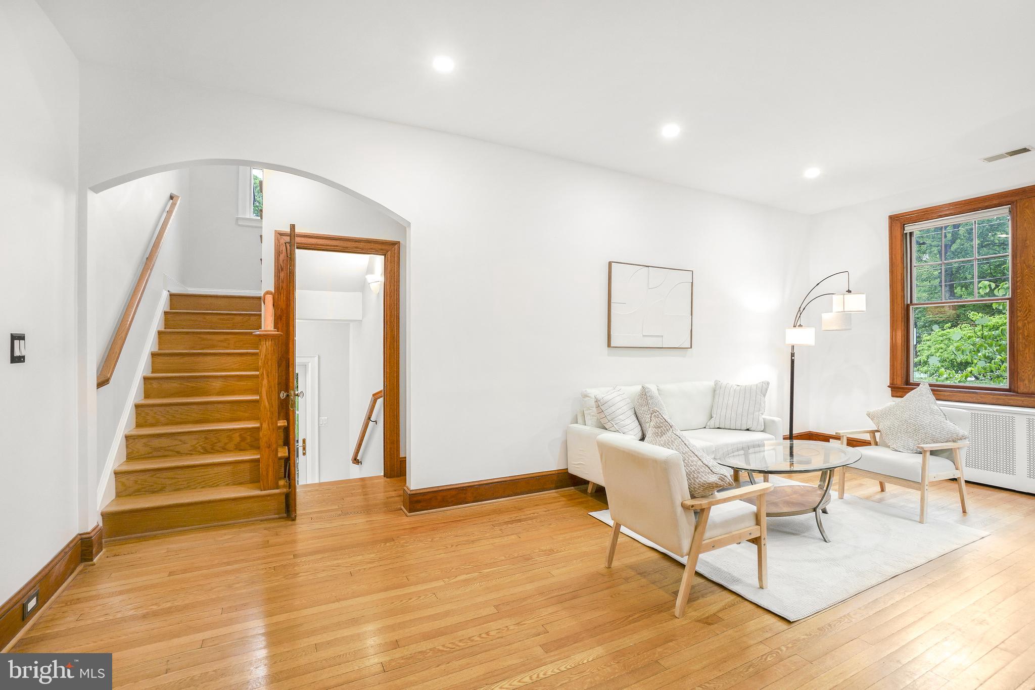 SIMPLY ENCHANTING! This completely renovated 1928 Tudor is pure magic, seamlessly blending period charm with so many modern convenience. Nestled on a spectacular corner lot with lush, vibrant azaleas among other plantings, and filled with impeccable details, including pristine hardwood floors, vaulted ceilings, custom built-ins, elegant wood trim, archways, and replacement windows, you'll feel right at home with the warmth and bevy of right-size spaces this home has to offer!Step through the classic covered entry into a charming vestibule entrance with abundant, gorgeous wood and a deep closet, leading to the captivating living spaces within. The inviting living room features a wood-burning fireplace with stained-glass sconces, two ceiling fans, and an effortless flow into the dining ar...