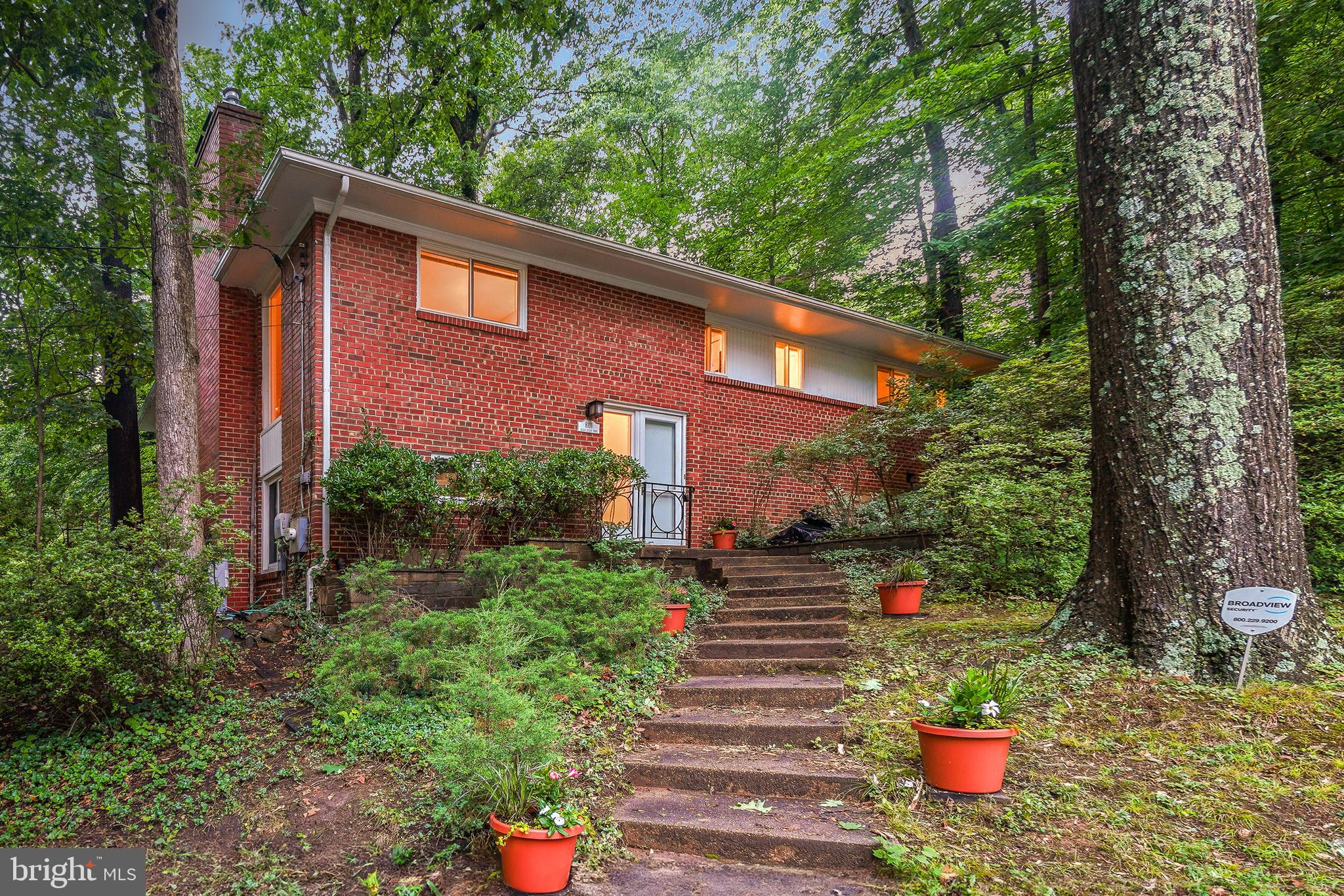 Welcome to 8101 Sligo Creek Parkway! Perfectly perched on a hillock with panoramic views of Sligo Creek Park, this picturesque contemporary offers a rare connection to nature, with incredible park vistas just beyond your windows. Follow an enchanting stone pathway to the entrance and step inside this inviting home. All under a brand-new roof!The main level features a large, open living and dining area framed by elongated windows that showcase the park, complemented by a classic brick fireplace and warm wood flooring. The thoughtfully updated kitchen, located just off the dining room, includes granite counters, a double oven, glass tile accents, a crisp white appliance suite, and direct access to the backyard.Three well-proportioned bedrooms and two full bathrooms complete this level, including a serene primary suite with striking corner windows, a walk-in closet, and a private en-suite bath. Additional highlights include a ceramic tile hall bathroom and three convenient closets for extra storage.The lower level offers a comfortable family room with built-in display shelving, a second brick fireplace, a dedicated desk area with drawers and cabinetry, and access to a peaceful stone patio overlooking Sligo Creek Parkway. This level also includes a powder room, a utility room with additional storage, a deep closet under the stairs, and a laundry room with a utility sink.Outside, a lush yard with meandering stone pathways, a private parking pad, and a stone patio create an ideal setting for outdoor enjoyment. Directly across the street, one of Sligo Creek Park's playgrounds adds to the allure of this special location.Sligo Creek Park, a free-flowing tributary of the Anacostia River, provides a peaceful retreat surrounded by woodlands, biking and walking trails, and abundant wildlife. Perfect for those seeking fresh air, scenic beauty, and a connection to nature--all just minutes from Downtown Silver Spring with easy access to I-495.